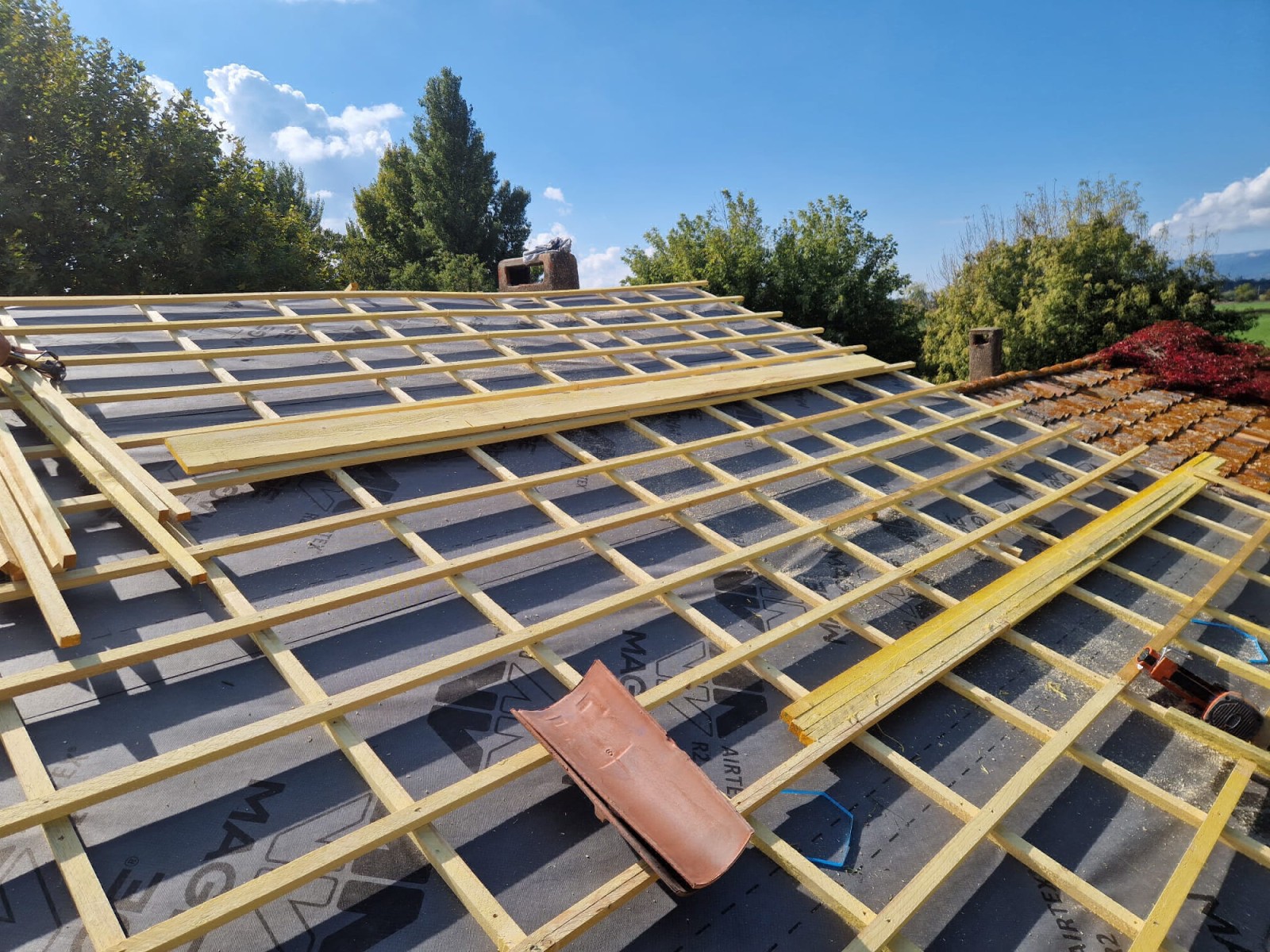 Notre intervention comprenait aussi la mise en place d'un contre-lattage pour une ventilation optimal et une fixation solide de la couverture.