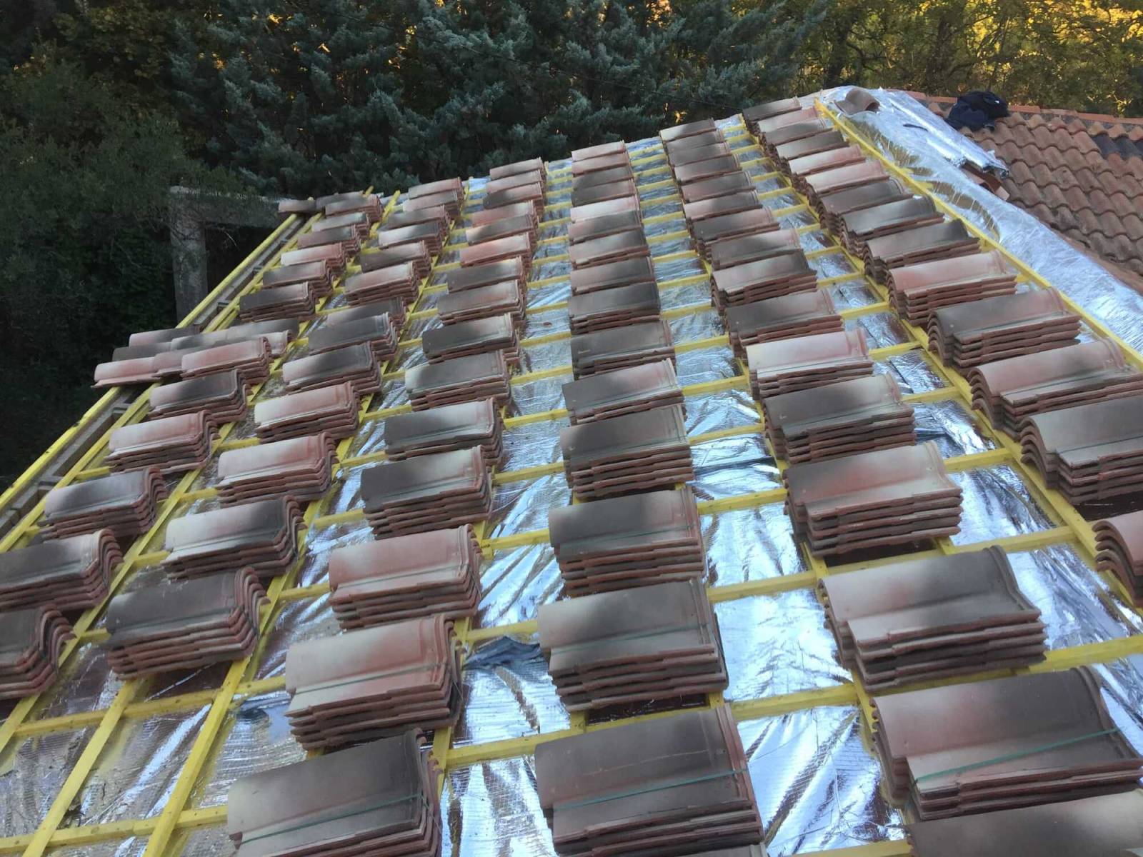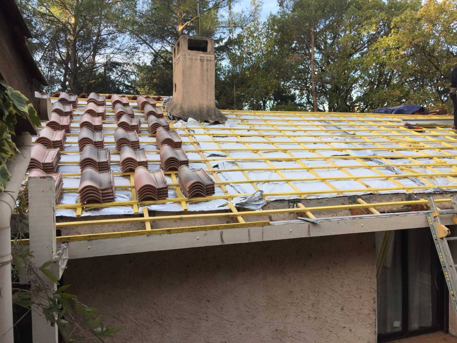 M Charpentes est intervenu avec ses ouvriers spécialisés dans la commune de Ventabren Près d'Aix -En- Provence pour la rénovation d'une ancienne toiture et également la mise en place d'une isolation des combles avec du Triso super12.